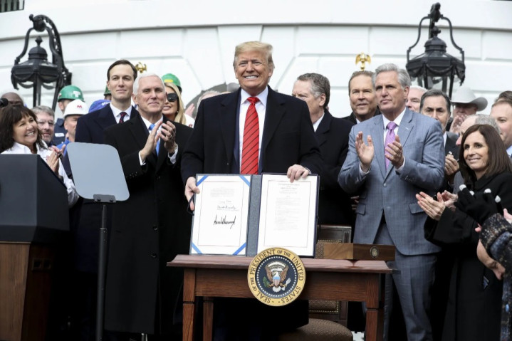 2020年,时任美国总统特朗普展示了签署的《美墨加协定》。彭博社